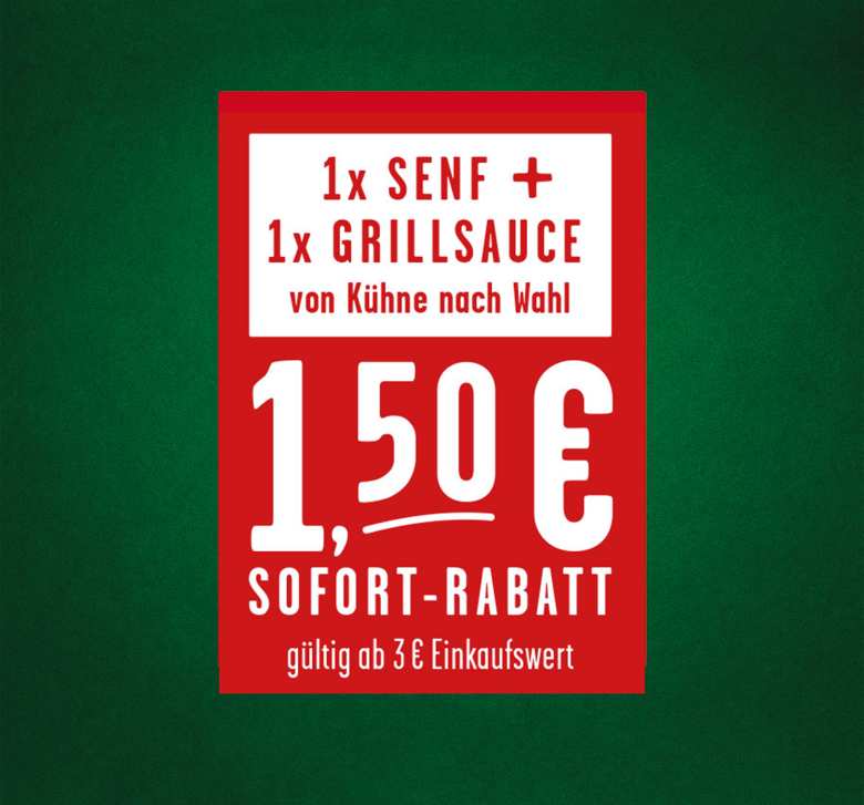 - Kaufe 1 x Kühne Senf UND 1 x Kühne Grillsauce im Wert von insgesamt mind. 3 € Einkaufswert.